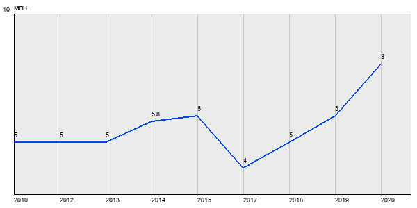 5 млн. руб, а в 2020 году - 8 млн. руб. Таким образом, средняя стоимость однокомнатных квартир в районе "Новокосино" за