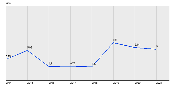 5.25 млн. руб, а в 2021 году - 6 млн. руб. Таким образом, средняя стоимость однокомнатных квартир в районе "Орехово-Борисово Северное" за