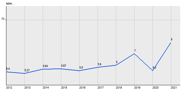 5.4 млн. руб, а в 2021 году - 8 млн. руб. Таким образом, средняя стоимость однокомнатных квартир в районе "Косино-Ухтомский" за