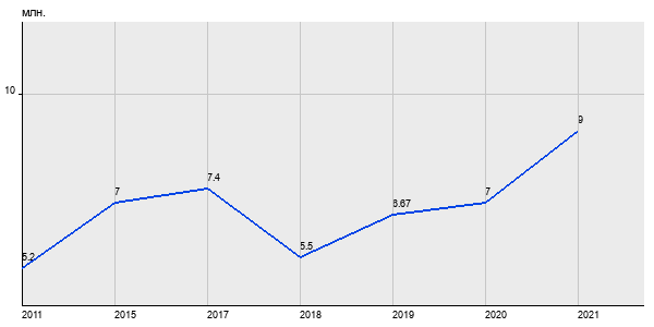 5.2 млн. руб, а в 2021 году - 9 млн. руб. Таким образом, средняя стоимость однокомнатных квартир в районе "Чертаново Центральное" за