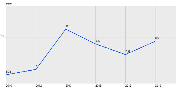 5.33 млн. руб, а в 2019 году - 9.5 млн. руб. Таким образом, средняя стоимость двухкомнатных квартир в районе "" за