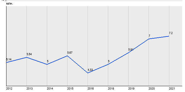 5.14 млн. руб, а в 2021 году - 7.2 млн. руб. Таким образом, средняя стоимость однокомнатных квартир в районе "" за