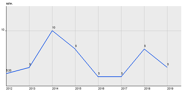 Из графика видно, что в 2012 году средняя стоимость однокомнатных квартир по адресу "Москва, Кировоградская ул., 16к1" состаляла 5.33 млн. руб, а в 2019 году - 6 млн. руб. Таким образом, средняя стоимость однокомнатных квартир в районе "" за 8 лет выросла на 11 % что является неплохим показателем для покупки квартиры в данном районе)