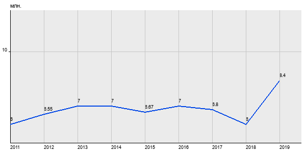 6 млн. руб, а в 2019 году - 8.4 млн. руб. Таким образом, средняя стоимость однокомнатных квартир в районе "Кузьминки" за