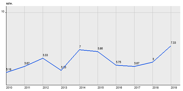 5.18 млн. руб, а в 2019 году - 7.33 млн. руб. Таким образом, средняя стоимость двухкомнатных квартир в районе "Лосиноостровский" за
