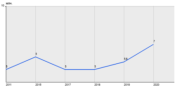 5 млн. руб, а в 2020 году - 7 млн. руб. Таким образом, средняя стоимость двухкомнатных квартир в районе "Выхино-Жулебино" за