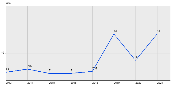 7.2 млн. руб, а в 2021 году - 13 млн. руб. Таким образом, средняя стоимость трёхкомнатных квартир в районе "" за