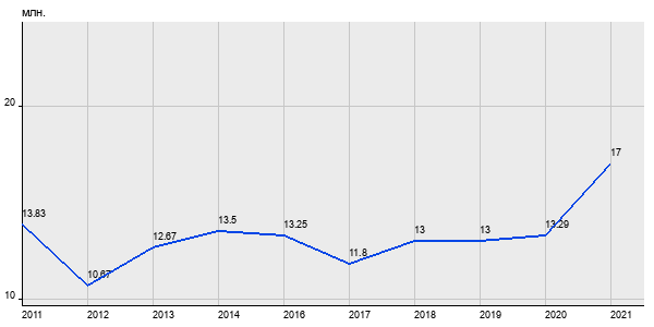 13.83 млн. руб, а в 2021 году - 17 млн. руб. Таким образом, средняя стоимость трёхкомнатных квартир в районе "Южное Бутово" за