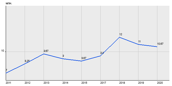 7 млн. руб, а в 2020 году - 10.67 млн. руб. Таким образом, средняя стоимость двухкомнатных квартир в районе "Фили-Давыдково" за