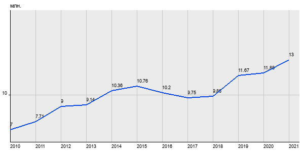 7 млн. руб, а в 2021 году - 13 млн. руб. Таким образом, средняя стоимость однокомнатных квартир в районе "" за