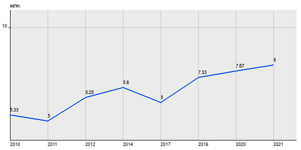 5.33 млн. руб, а в 2021 году - 8 млн. руб. Таким образом, средняя стоимость однокомнатных квартир в районе "Проспект Вернадского" за