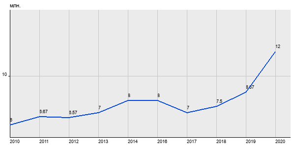 6 млн. руб, а в 2020 году - 12 млн. руб. Таким образом, средняя стоимость двухкомнатных квартир в районе "Ломоносовский" за
