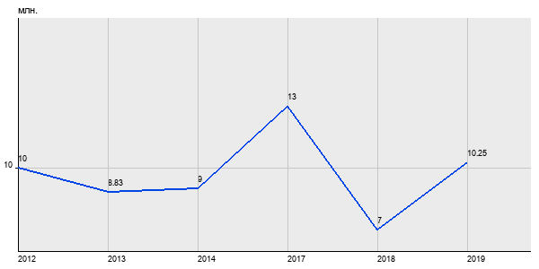 10 млн. руб, а в 2019 году - 10.25 млн. руб. Таким образом, средняя стоимость двухкомнатных квартир в районе "Люблино" за