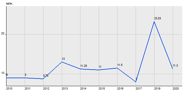 9 млн. руб, а в 2020 году - 11.3 млн. руб. Таким образом, средняя стоимость двухкомнатных квартир в районе "Марьино" за