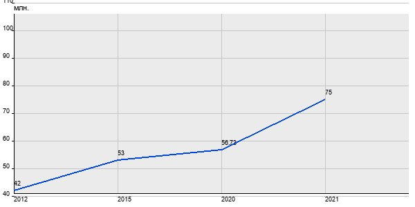 42 млн. руб, а в 2021 году - 75 млн. руб. Таким образом, средняя стоимость четырёхкомнатных квартир в районе "Мещанский" за