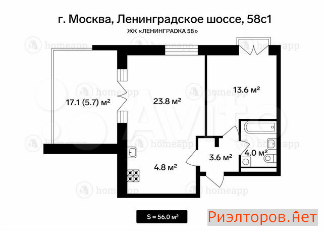 Рыночная стоимость квартиры: 21,420 млн руб.