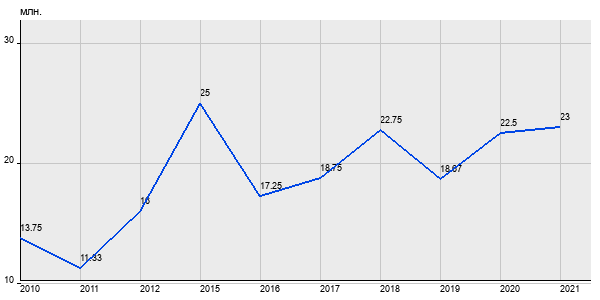 13.75 млн. руб, а в 2021 году - 23 млн. руб. Таким образом, средняя стоимость двухкомнатных квартир в районе "Пресненский" за