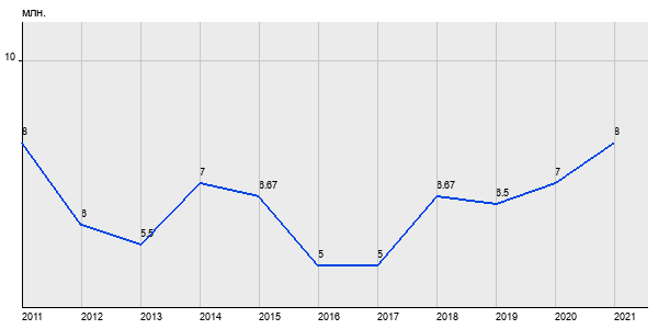 8 млн. руб, а в 2021 году - 8 млн. руб. Таким образом, средняя стоимость двухкомнатных квартир в районе "" за