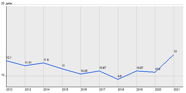 12.1 млн. руб, а в 2021 году - 13 млн. руб. Таким образом, средняя стоимость трёхкомнатных квартир в районе "Выхино-Жулебино" за