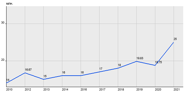 14 млн. руб, а в 2021 году - 25 млн. руб. Таким образом, средняя стоимость трёхкомнатных квартир в районе "" за
