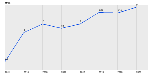 2.5 млн. руб, а в 2021 году - 9 млн. руб. Таким образом, средняя стоимость двухкомнатных квартир в районе "Черёмушки" за