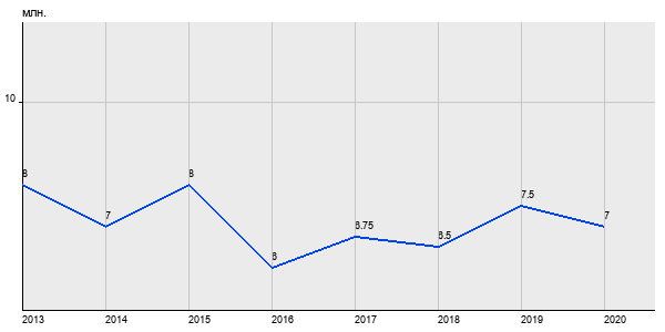 8 млн. руб, а в 2020 году - 7 млн. руб. Таким образом, средняя стоимость двухкомнатных квартир в районе "Южное Бутово" за