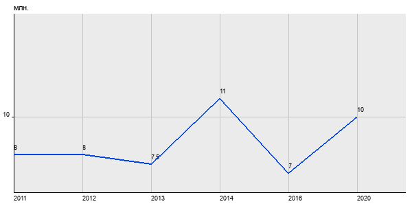 8 млн. руб, а в 2020 году - 10 млн. руб. Таким образом, средняя стоимость двухкомнатных квартир в районе "Котловка" за