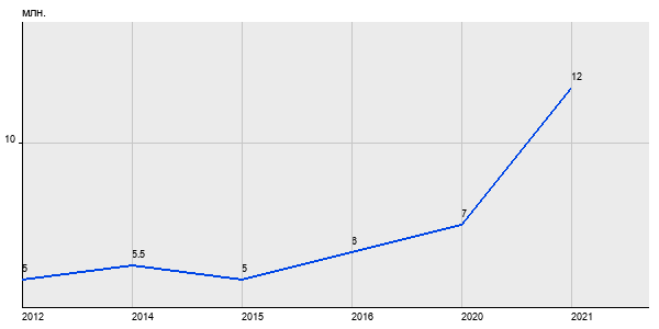 5 млн. руб, а в 2021 году - 12 млн. руб. Таким образом, средняя стоимость двухкомнатных квартир в районе "" за