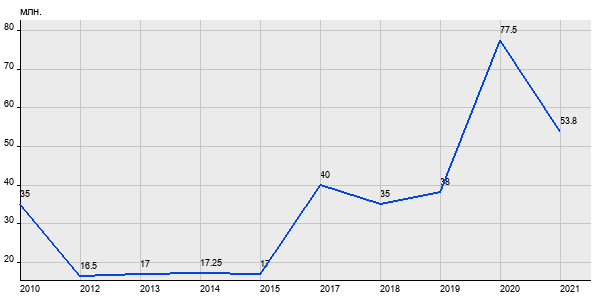 35 млн. руб, а в 2021 году - 53.8 млн. руб. Таким образом, средняя стоимость двухкомнатных квартир в районе "Арбат" за