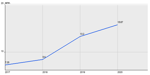 7.25 млн. руб, а в 2020 году - 15.67 млн. руб. Таким образом, средняя стоимость двухкомнатных квартир в районе "Солнцево" за