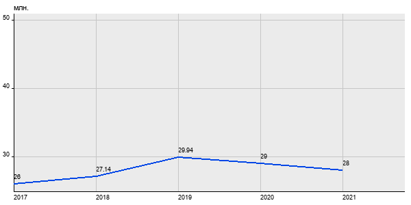 26 млн. руб, а в 2021 году - 28 млн. руб. Таким образом, средняя стоимость четырёхкомнатных квартир в районе "Выхино-Жулебино" за