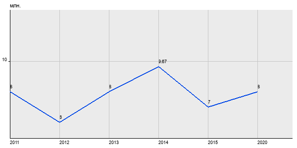 8 млн. руб, а в 2020 году - 8 млн. руб. Таким образом, средняя стоимость однокомнатных квартир в районе "Нагатино-Садовники" за