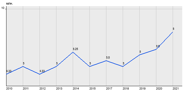 4.33 млн. руб, а в 2021 году - 8 млн. руб. Таким образом, средняя стоимость однокомнатных квартир в районе "" за