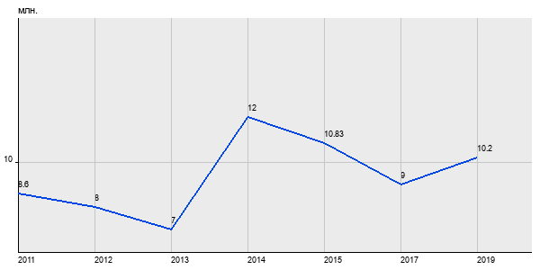 8.6 млн. руб, а в 2019 году - 10.2 млн. руб. Таким образом, средняя стоимость двухкомнатных квартир в районе "" за