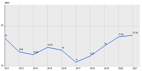 17 млн. руб, а в 2021 году - 17.75 млн. руб. Таким образом, средняя стоимость трёхкомнатных квартир в районе "Дорогомилово" за