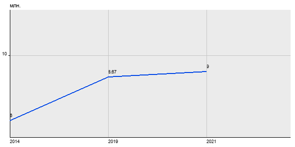 6 млн. руб, а в 2021 году - 9 млн. руб. Таким образом, средняя стоимость однокомнатных квартир в районе "Кунцево" за