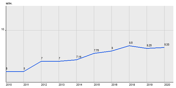 6 млн. руб, а в 2020 году - 8.33 млн. руб. Таким образом, средняя стоимость однокомнатных квартир в районе "Даниловский" за
