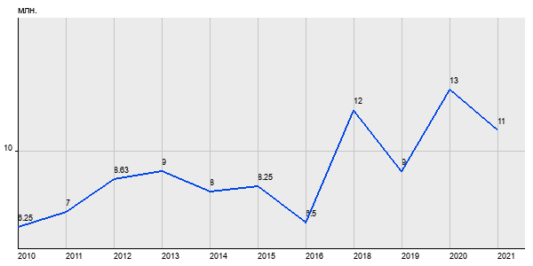 6.25 млн. руб, а в 2021 году - 11 млн. руб. Таким образом, средняя стоимость двухкомнатных квартир в районе "Проспект Вернадского" за