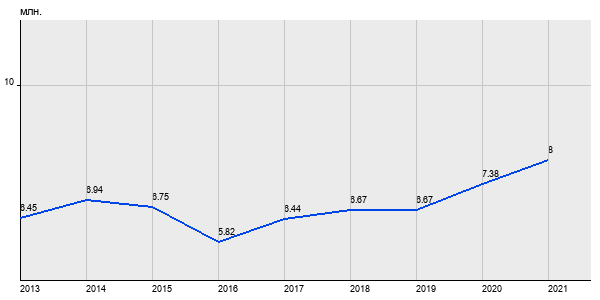 6.45 млн. руб, а в 2021 году - 8 млн. руб. Таким образом, средняя стоимость однокомнатных квартир в районе "Марьино" за