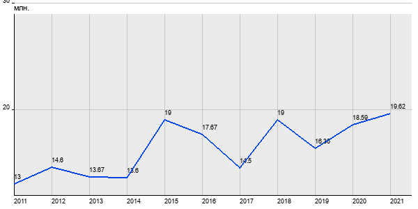13 млн. руб, а в 2021 году - 19.62 млн. руб. Таким образом, средняя стоимость трёхкомнатных квартир в районе "Тропарёво-Никулино" за