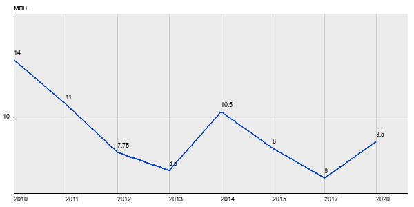 14 млн. руб, а в 2020 году - 8.5 млн. руб. Таким образом, средняя стоимость двухкомнатных квартир в районе "Ховрино" за
