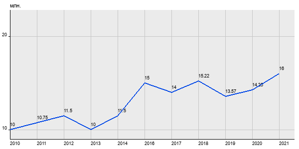 10 млн. руб, а в 2021 году - 16 млн. руб. Таким образом, средняя стоимость двухкомнатных квартир в районе "Таганский" за