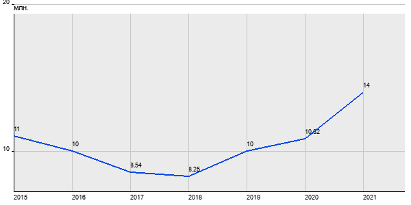 11 млн. руб, а в 2021 году - 14 млн. руб. Таким образом, средняя стоимость двухкомнатных квартир в районе "Нагатинский Затон" за