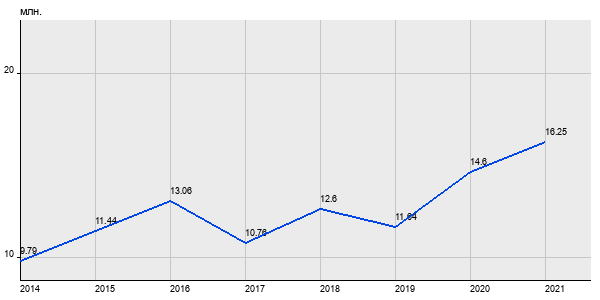 9.79 млн. руб, а в 2021 году - 16.25 млн. руб. Таким образом, средняя стоимость однокомнатных квартир в районе "Якиманка" за