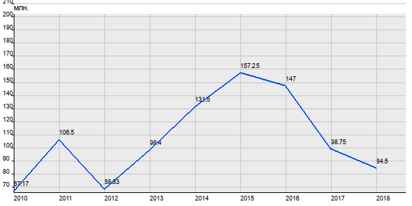 67.17 млн. руб, а в 2018 году - 84.5 млн. руб. Таким образом, средняя стоимость четырёхкомнатных квартир в районе "" за
