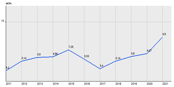 5.2 млн. руб, а в 2021 году - 8.5 млн. руб. Таким образом, средняя стоимость двухкомнатных квартир в районе "Ивановское" за