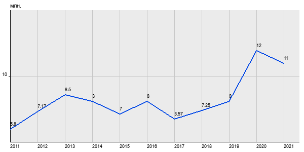 5.8 млн. руб, а в 2021 году - 11 млн. руб. Таким образом, средняя стоимость трёхкомнатных квартир в районе "" за