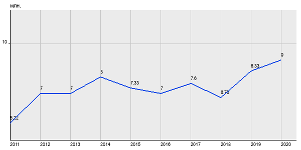 5.22 млн. руб, а в 2020 году - 9 млн. руб. Таким образом, средняя стоимость однокомнатных квартир в районе "Марфино" за