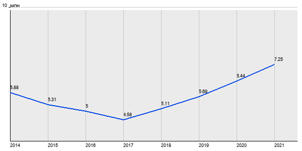 5.88 млн. руб, а в 2021 году - 7.25 млн. руб. Таким образом, средняя стоимость однокомнатных квартир в районе "Выхино-Жулебино" за