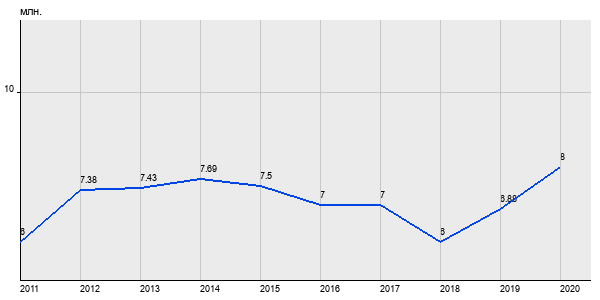 6 млн. руб, а в 2020 году - 8 млн. руб. Таким образом, средняя стоимость двухкомнатных квартир в районе "" за